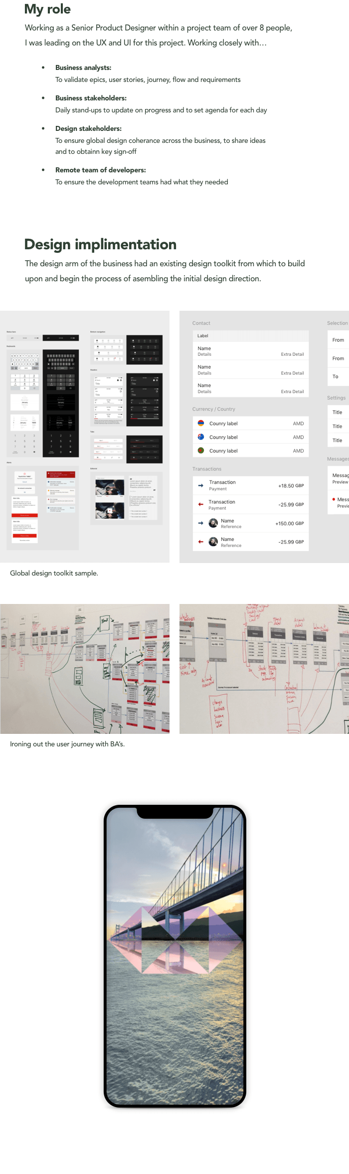 In March 2018 I was tasked by a design agency in London to help develop and lead the creative design for a core native mobile business banking app for a multi-trillion dollar platform.